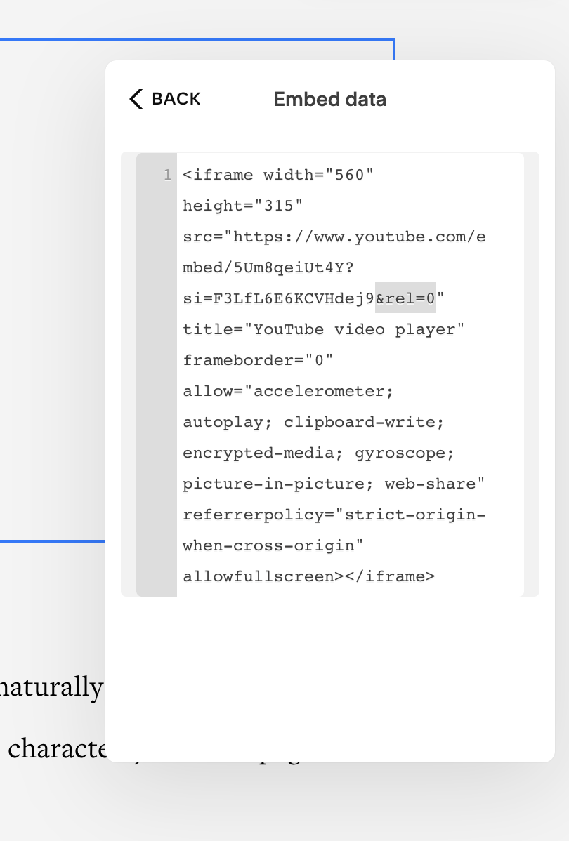 Utilizing Youtube versus Squarespace to host your videos helps with your site speed; however, by default, YouTube will autoplay related videos after yours is over. This could be competitor or off-brand videos. To prevent this from happening, when you copy the YouTube embed script, add “&rel=0”