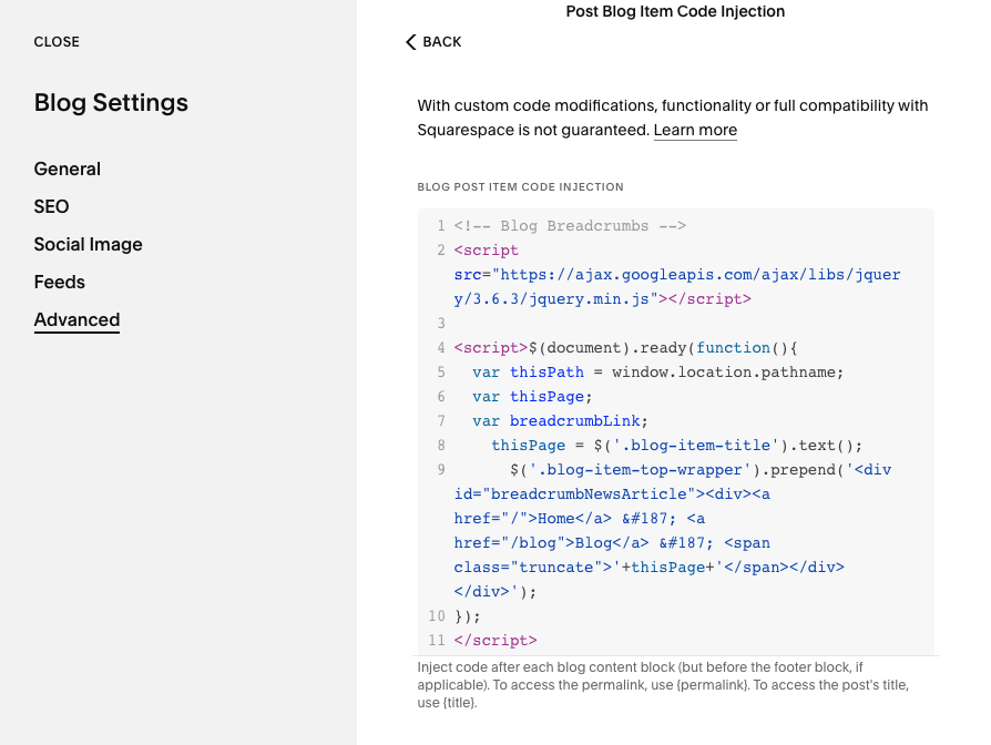 Adding Breadcrumbs to Squarespace